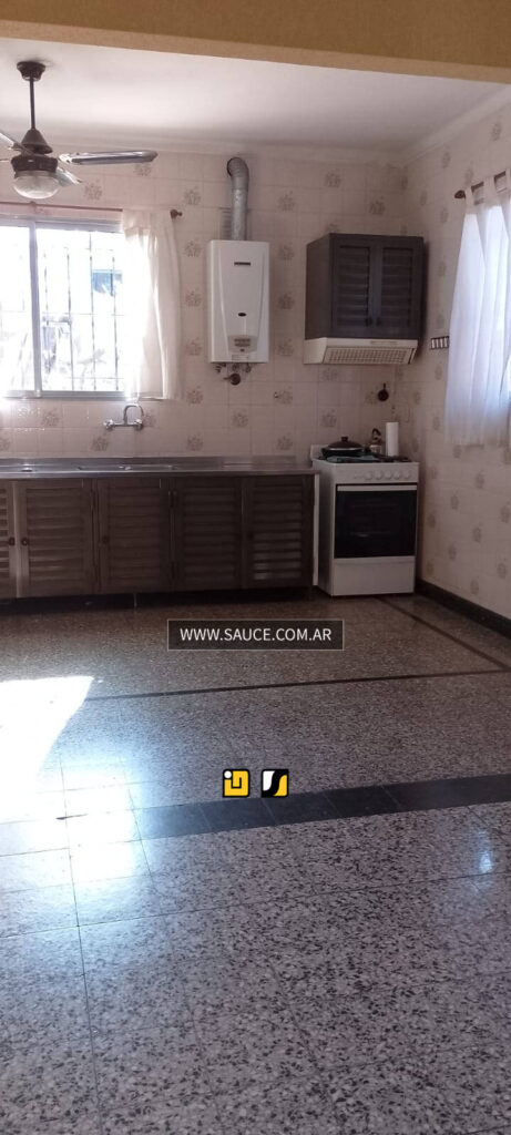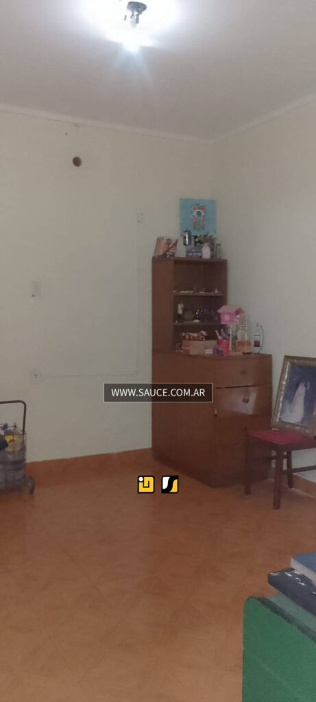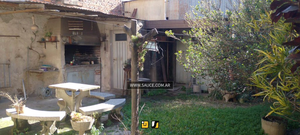 Casa en buen estado, garage, living. 2 dormitorios y 1 en PA con escalera en el patio, antebaño, baño, amplia cocina comedor, lavadero, patio verde con asador y pequeño depósito con el baño de servicio. Galpón que se puede transformar en quincho, en el patio está la escalera que lleva al 3º dormitorio y escritorio en PA.